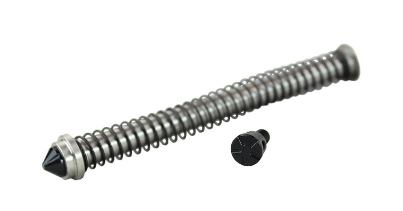 スプリングガイドは耐久性・耐食性に優れたステンレスを材質としているため、 ステンレスの美しい光沢と特徴的なエンドキャップでグロックの外観をグレードアップすることができます。